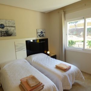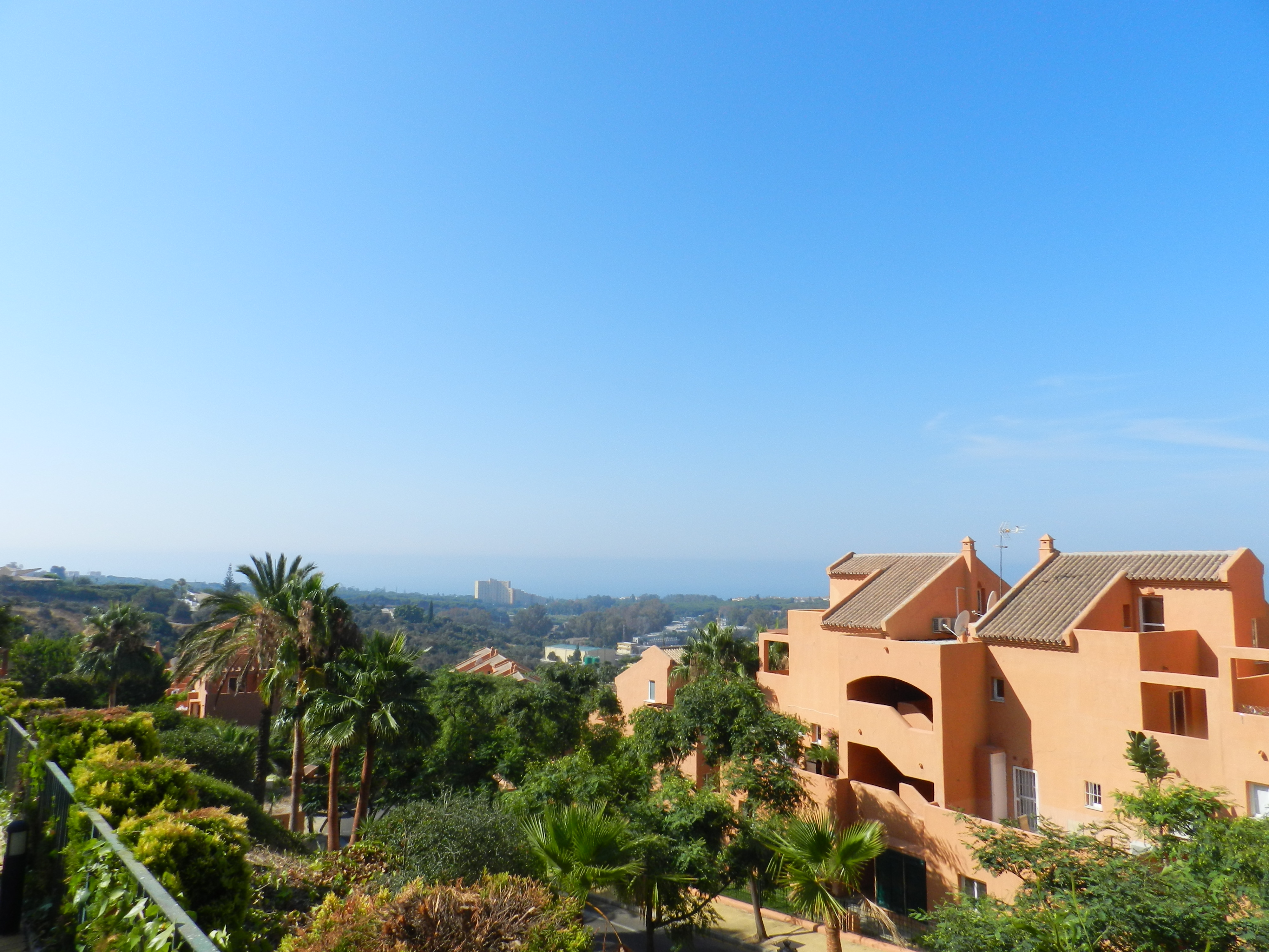 Incredible views of the Mijas Mountain, sea and golf course from terrace at the front of the property.The property has sleeping arrangements for 6 people. It has 2 spacious and independent rooms, the master has a terrace overlooking the sea and swimming pool area. 1 En-suite bathroom compliments the master bedroom and an additional bathroom services the 2nd bedroom and living area. The living room has an additional sofa bed to accommodate 2 extra guests.